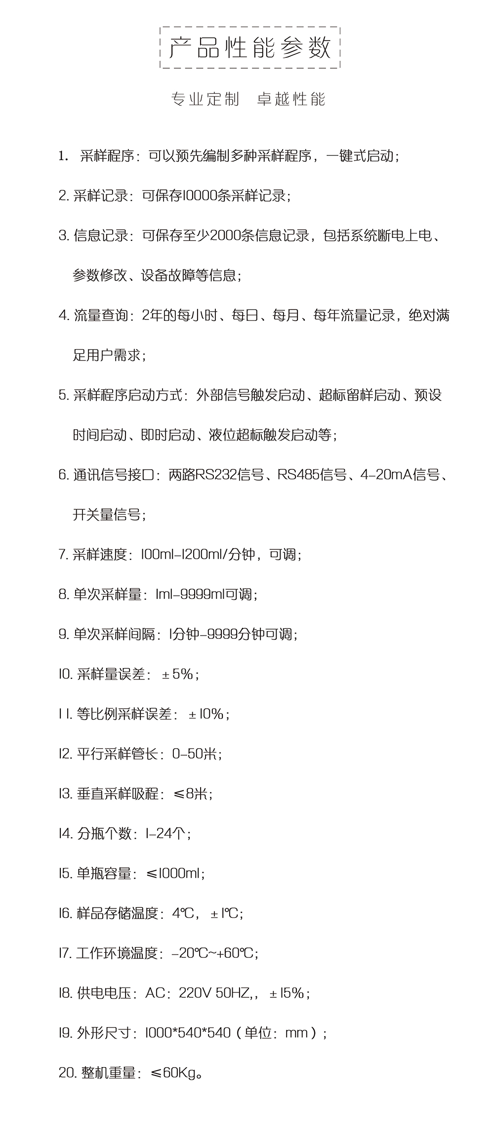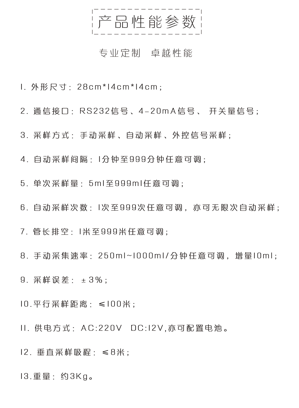 儀器采用可靠蠕動泵,混合式步進(jìn)機驅(qū)動,滿足各類環(huán)境條件下的水質(zhì)采樣。適用于各*環(huán)境監(jiān)測站、污水處理廠、水利、水務(wù)及科研院所,對工業(yè)污水排放口、江、河、湖、海等水樣的采集。