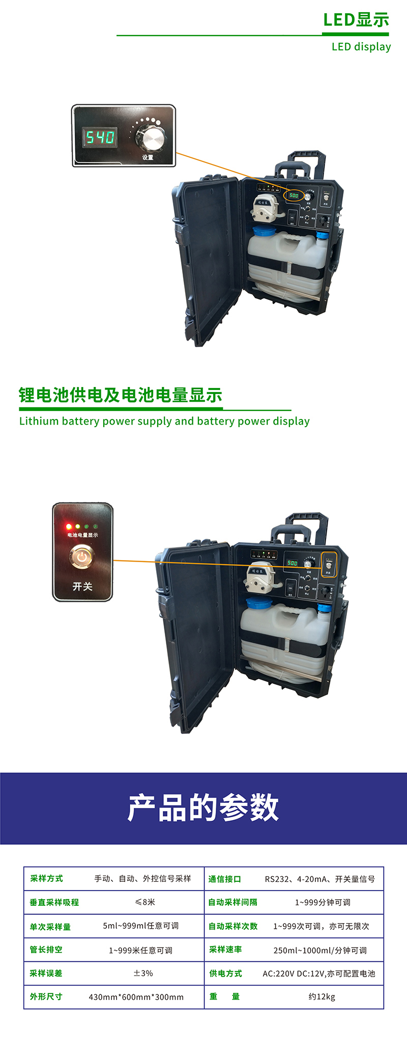 12. 人性化設(shè)計,參數(shù)設(shè)置方便,操作簡單,一鍵式啟動采樣;