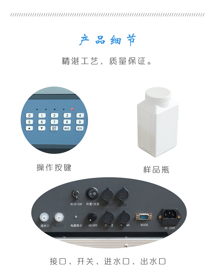 6、液體流量檢測(cè)器,自動(dòng)完成取樣口及管路的清洗、排空,保證采集到合格的水樣。