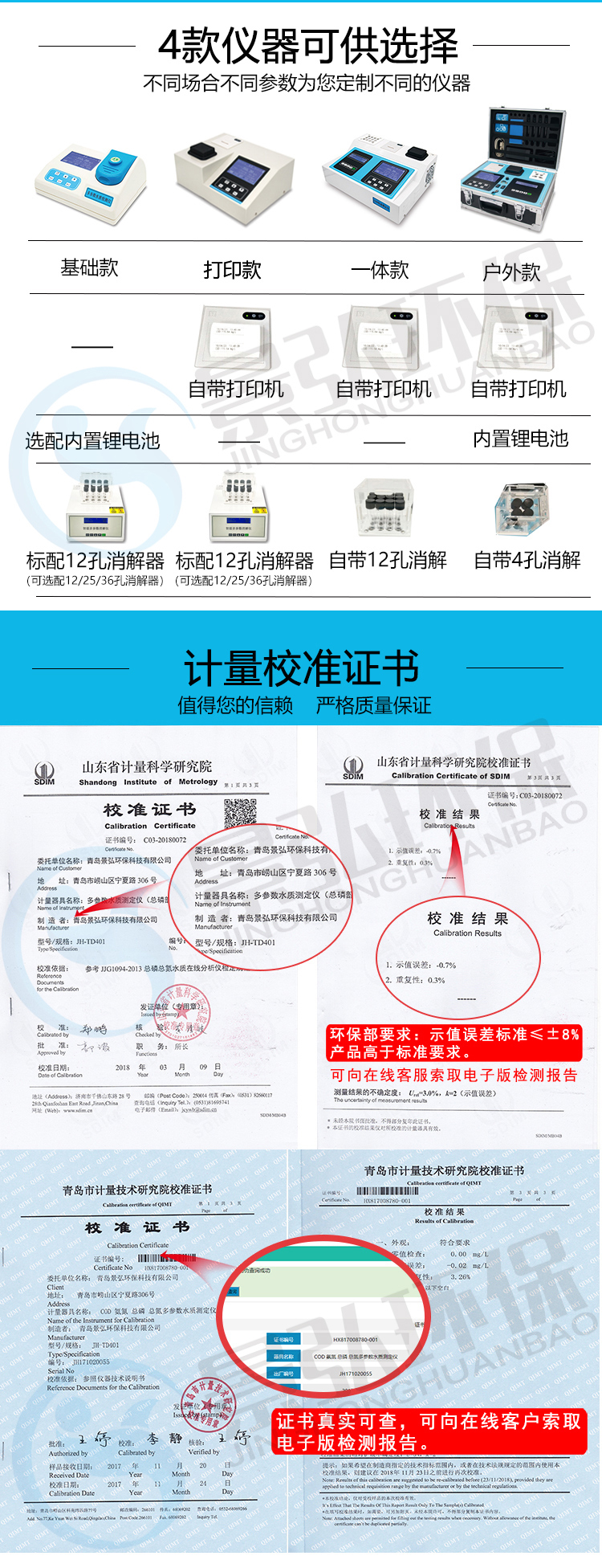 注:此款產(chǎn)品可做COD、氨氮、總磷任意2種指標(biāo)結(jié)合的二合一型檢測儀