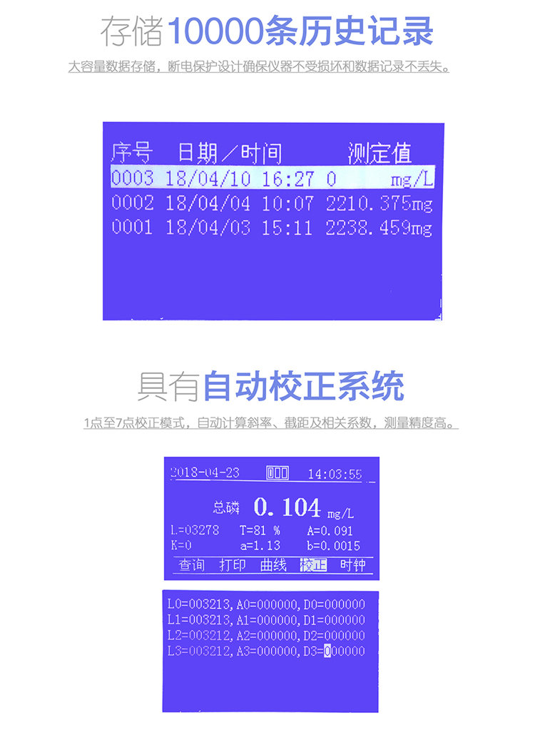 2.校 準(zhǔn):1-7點(diǎn)校正模式,自動校正曲線值;